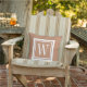 テラコタアンドホワイトクラシックスクエアモノグラム アウトドアクッション