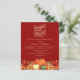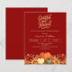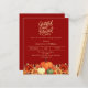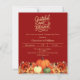 テラコッタ、燃えたオレンジ色の背景。パンプキ飾ンとオレンジと黄色の花を持つ。カスタマイズしてパーティー詳細を追加する。文字脚本:感謝賛美と。1枚= 1枚の招待状を印刷したエッジからエッジ