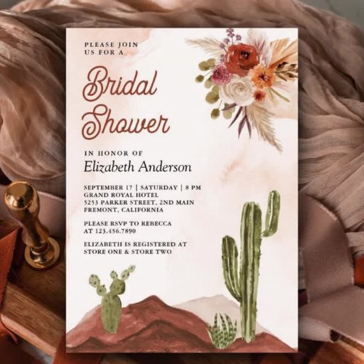 オンラインRSVP用のQRコードと美しい水の色の砂漠の風景と素朴な花を特集エレガント1つの結婚式で、この砂漠のテーマであなたのゲストを驚かせる。単にイベントの詳細をこの使い慣れたテンプレートに追加し、あなたの写真と一緒にこのカードを飾るだけでお気に入りのす。