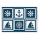 白航海のと青の正方形のセーリングホイール、セーリングボート、コンパスといかり装飾をテーマにしたストライプのデザイン
