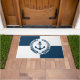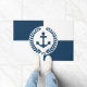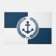 青航海のと白の幾何学的な背景の上にいかりと月桂樹のリース装飾をテーマにしたデザイン