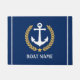 飾ホームの入り口と航海のあなたのボート名パーソナライズされた、家族の名前または他の希望の文字。ネイビーカスタムブルーの白の金ゴールドスタイルのローレルエンブレムとロープのいかりを備えたデザインのボートのテーマを備えストライプ、または簡単にあなたの現在の装飾やに合わせて原色を調整する。