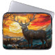 鹿の日没ウッドランド山名コンピュータラップトップスリーブケースパーソナライズされたは、日没の鹿を特徴とし、背景に木や山を持つステンドグラス効果パーソナライズされたと、スクリプトタイポグラフィで名前を付けモダンた。誕生日、クリスマス、休日、父の日、兄、夫、パートナー、友人、同僚など最高の、家族や友人のためのギフトとして完璧。©Evco Studio www.zazzle.com/store/evcostudioによる設計