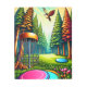 レトロ探しディスクゴルフコースとイーグル松の木の上に舞い上がる松の木aiアート。