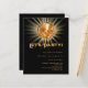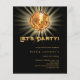 50番目(または任意の年齢)のパーティの招待状。金色のディスコのボールで装飾された黒い背景。文字:パーティーしよう!名前とパーティー・詳細のパーソナライズおよび追加名前は手書入力のスタイルスクリプトで指定する。1枚= 1枚の招待状を印刷したエッジからエッジ