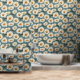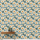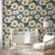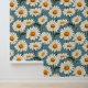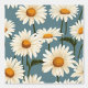 青い背景に白いデイジーの模様で夏の匂いを嗅ぐ。