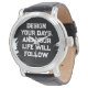 単なる時計ではなく、この時計は毎日、刻々と数えるアラームである。そのクラシック、大柄なデザイン、本物の革紐は、それがスタイルから出ることを保証し、それが大事な行事と冒険の両方にフォーマル最適なカジュアル。この時計はカスタム、私たちの象徴的なロゴのフルカラーのプリントを搭載し、目的の人生にコミットしている男のための声明の作品である。信頼性の高い3ハンドアナログの日本クォーツ®ムーブメントで作られ、この時計は最後まで組み立てられている。最大3ATMまでの耐水性を備え、日が来るものなら何でもできる。製品詳細:素材:本革ストラップ付き合金顔寸法:顔:直径1.45インチ、ストラップ:直径9.25インチx 0.86インチ筐体: 1.75インチ直径ムーブメント:3ハンドアナログ日本石英®特徴:バックル閉鎖、最大3ATM(98.4フィート)、バッテリ内蔵保証: 1年間メーカーの限定保証13歳以上のお勧め