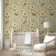 枝にロビンを乗せ、オレンジ色の蝶を飛ばし、緑豊かな緑のイラストレーションに囲まれた花を咲かせる柔らかなヴィンテージスタイルのが、穏やかな庭園の風景を作り出お洒落す。