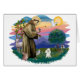 動物の守護聖人と宗派を超える愛する姿、聖フランシスは、ここにおもちゃの白いプードルで示されている。サン・フランシスの姿自体はジオットの14世紀最高傑作から改変され、Jean fitzgeraldによって新しい背景が作られた