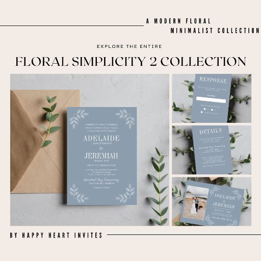 トゥルシンプル6ダスティブルーフローラ結婚ズ 招待状