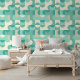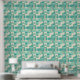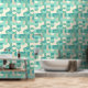 トゥーペベージュティール(緑がかった色)ブルーミントグリーンサークルパターン 壁紙