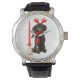 トナカイの服を着たクリスマスブラックトイプードル犬 腕時計