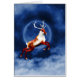 雲を通してトナカイを示す明るい飛んでいるクリスマスカードと月の過去。ビジネスが送信するための良いカード。