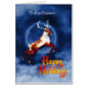 雲の中からトナカイを示す明るい飛んでいる幸せな休日のカードと過去の月。ビジネスが送信するための良いカード。