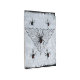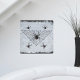 この金属製の壁プリントは、黒い三角形のスパイダーウェブを持ち、内側に黒い未亡人のスパイダーが付いており、くもの巣の周りに赤い砂時計のシンボルを持つ白い外観の背景に黒い縁取り色彩の鮮やかフェイク、黒い縁取りを持つ。