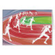 トラックのまわりで競争で全速力で走るランナーのイラストレーションの背景