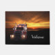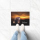 夜明けまたは薄暗がりのトラック運転手またはトラックの運転手の道の半トラック、大きい装備、ちょうど大きいトラックはドア・マットを歓迎します