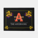 Doormat / House Mats:名前とエレガントモノグラムの家族doormat。金色のトリスケオンのシンボルに囲まれたアルキメディアンのトリプルスパイラルシンボル。ギリシャ/ケルトの伝統に基づく幸運なアンティークデザイン。日を出して戸を明かりなさい。