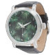 トレンディーエレガントブラックグリーン熱帯パ葉ーム 腕時計