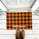 トレンディーオレンジオータムハロウィンバッファロープレイド ドアマット