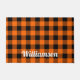 お客様に、この歓迎され、暖かい形式で適切な場所にあることを知らせなさい。オレンジと黒のバッファロー市松模様にのプライド、またはランバージャックパターンを表示。白カスタマイズのスクリプト文字に表示される名前をカスタマイズする。トレンディー、ミニマルモダンスト。