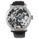 トレンディートロピカル抽象芸術B&Wフローラルパターンウォッチ 腕時計