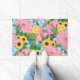トレンディーピンク牡丹黄色ひまわり水彩 ドアマット