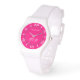 このカスタムファッション時計は熱いピンク鮮やかの明るい赤紫色のガーリーアクセントの色の装飾で自分のために、またはギフトとして確実にすべての行事に印象を与える。文字とモノグラムでパーソナライズ。導入