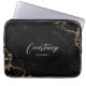 トレンディーブラック&金ゴールドマーブルスクリプトモノグラム名 ラップトップスリーブ