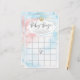 金ゴールドグリッターとクラウンを備えたピンクとブルーの水の色の背景にモダンスクリプトフォントを備えたベビシャワーゲームカードは、ジェンダーのリビールベイビーシャワーに最適!