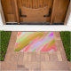 トレンディーユニークピンクブルーグリーン抽象芸術波 ドアマット