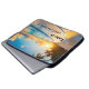 ラップトップスリーブは絵を描熱帯ビーチで夕日の夕日を特集し、ヤシの木や他の文字とおもしろい共に(オプション)。
