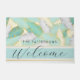 トロピッエレガントク緑豊かな歓迎ファミリー名Doormatsはトロピカルな葉のパターンを備えエレガント、書道のタイポグラフィで「歓迎」の文字とモダンあなたの家族の名前とパーソナライズされた一緒に。引っ越し祝いパーティー、クリスマスと誕生日の贈り物や屋外の装飾のために素晴らしい。設計: © Evco Studio www.zazzle.com/store/evcostudio