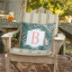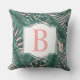 熱帯ガーリースタイル屋外ピローデザインは、パステルの赤面背景を持つ層状の葉の緑のヤシとモンステラの葉のパターンを備えている。白い装飾フレームは明るいコーラルピンクのモノグラム文字を持っていカスタマイズる(可能です)あなたの姓のイニシャルでパーソナライズすることができる。