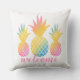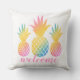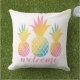 熱帯スタイル装飾用クッションは、水色のタイ色のグラデーションの外観と鮮やか3つの虹色のパイナップルを重ね合わせたピンクのスクリプトで歓迎される。あなたの休暇のビーチハウスや夏のホームデコールのためにシック。