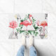 トロピカルモダンフラミンゴ幾何学的なファミリー名様のドアマットは、熱帯の緑と幾何学的な形状にアクセントされたピンクのフラミンゴを特徴とする。ごパーソナライズされた家族の名前をベースに設計: © Evco Studio www.zazzle.com/store/evcostudio