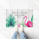 トロピカルフローラピンクフラミンゴファミリーネームビーチハウスドアマット