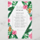 トロピカルパームズウォーターカラーブライダルシャワー招待。デザインは水の色の花束を備えエレガント、クラシックビーチの水の色の緑と花の赤面ピンクのハイビスカス、パラダイスのオレンジと青の鳥、緑の緑と濃い緑のヤシの葉。