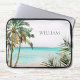 トロピッ保護クスタイルでノートPC!この袖モノグラムのは、水色の青いビーチ、ヤシの木の離れ、そして夏の愛好家に適した海岸の雰囲気を備えている。
