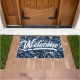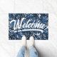 トロピッ離れクネイビーブルーホワイトスクリプトウェルカム ドアマット