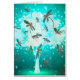 ターコイズの中に美しい木のまわりにが並ぶ白熱[赤熱]光を放つ豪華なメタリックなトンボ。