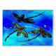 青い電灯の背景に豪華なメタリックトンボが浮かぶ。