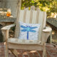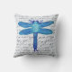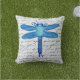 文字の背景にキラキラした青いトンボが美しい枕を作る屋外の生活宇宙!ポーチチェアやその他の外の生活のための屋外のファブリックを選択。屋内用ファブリックでも利用可能。私のオリジナル水彩再現。