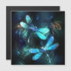 2つの透明な、光る、ターコイズは、光る湖の藻類描とホタルと夜の背景に芸術的にトンボハエ。白熱[赤熱]光を放つとんぼ。