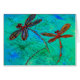 斑状の青と緑の背景にゴージャスな赤と青のターコイズのトンボ。私のオリジナルのドラゴンフライの作品から。リンゼアール
