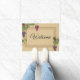 歓迎されたプリントのデザインおよび黄褐色の色のボーダーとの黄褐色の色でブドウのプリントと示されているドア・マット。
