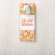 オレンジ色の背景の上に白いハイビスカスの花が二重に並んでいる。フロントの読文字は「邪魔しない」、バック読サイドのメイドサービスをお願い。前後ともに縁ど美しいオレンジ色の色合いで花に合わせる。このカスタマイズアイテムは好みに合わせて好きな背景やトリムの色やフレーズを好みで、または設計買済みです。