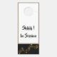 このドアハンガーは両面と黒と白でスタッフの上に金ゴールドの色の音色のストリームで。シルバーグレイに囲まれた縁ど上縁とサンプル文字「Shhhh!セッション中」。このカスタマイズアイテムは好みに合わせて好きな色やフレーズを望むか、または設計され買た。