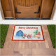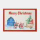 おもしろいの国クリスマスプレゼントとクリスマスツリーでいっぱいのワゴンを引っ張るトラクターとクリスマスフォーマット。すべてホームステッド納屋の前に。