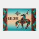 トレイルユニークフォーマットの「種類の一つ」の端をパーソナライズ!ターコイズとオレンジ色の日没の背景の下で歩道インディアンの南西先住民アメリカの端と馬を特徴とし縁どて、ターコイズ、オレンジとブラックの南西に囲まれ!アーティスト・ケリー・ミラーによるオリジナルアートデザイン。